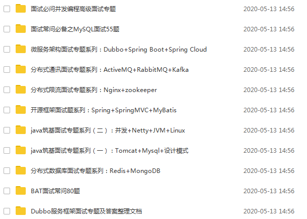 这套合集中面试题集包含了一线互联网公司近年的面试必问的Java岗面试题以及答案,也分享出来供大家查漏补缺。