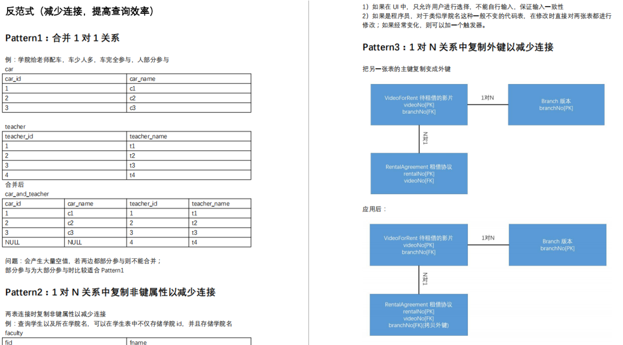 - Pattern2:1对N关系中复制非键属性以减少连接