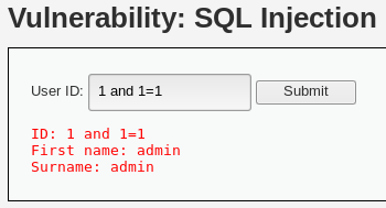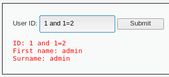 输入1 and 1=2提交