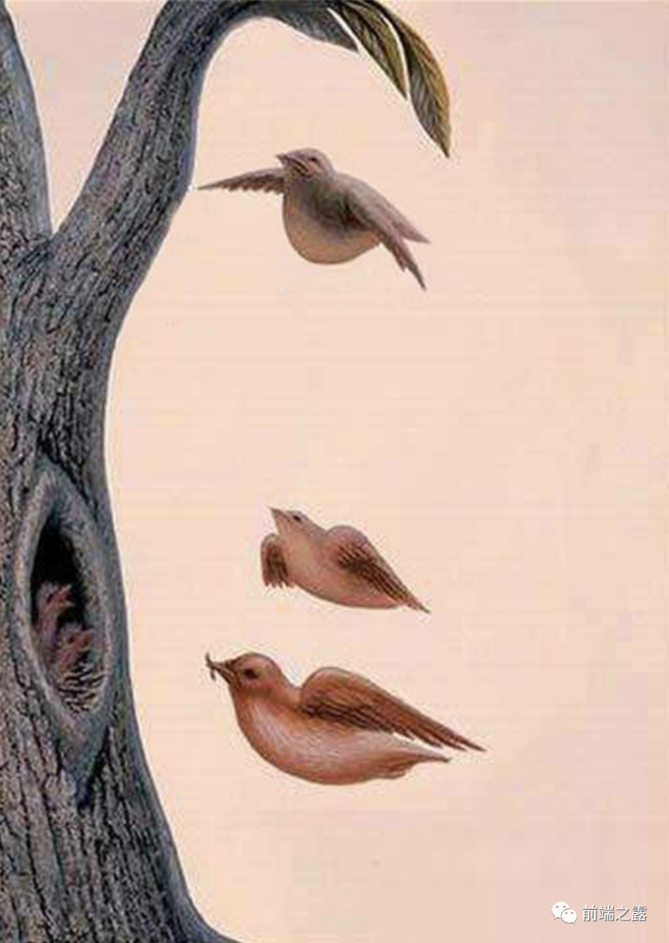第二幅图看细节的人看到的是鸟儿喂食,看宏观的人看到的是一个美女。