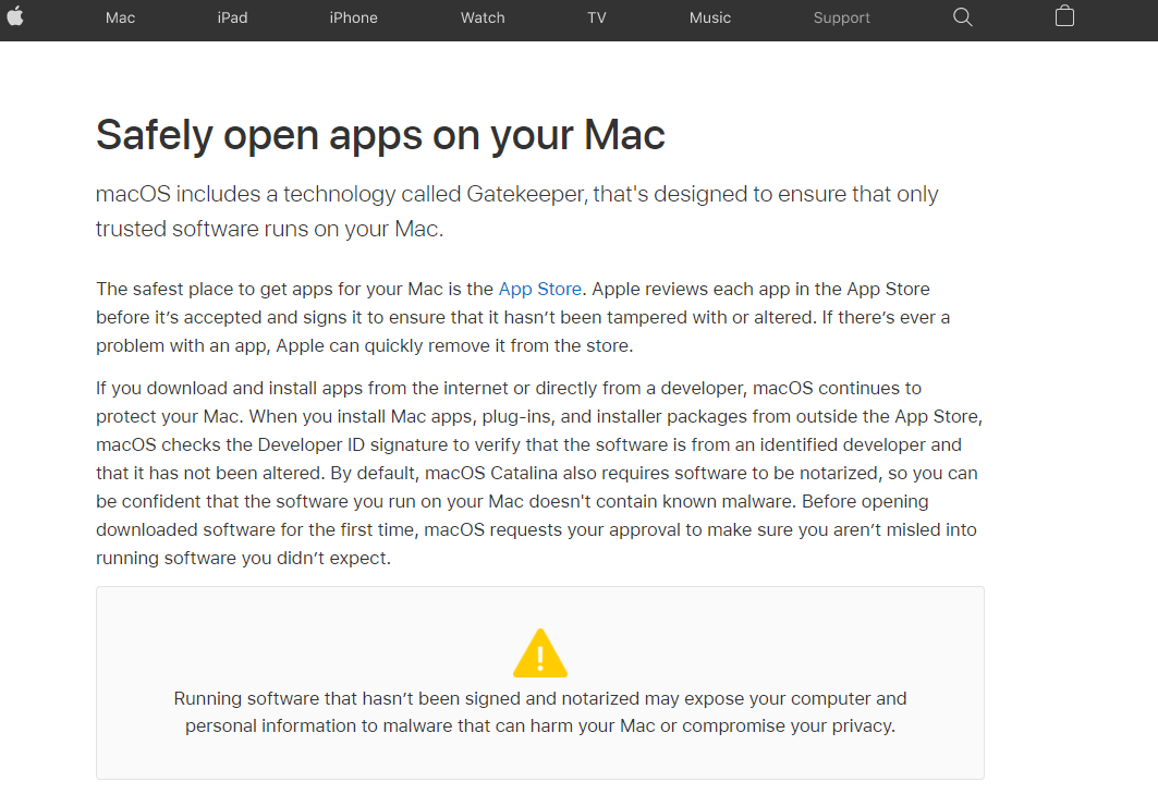 在支持文档更新中,苹果解释了“门禁(Gatekeeper)的用处,并给出了解决问题的详细步骤,具体可参考https://support.apple.com/en-us/HT202491