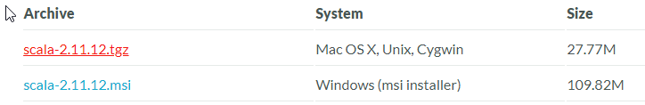 Scala 官网地址 http://www.scala-lang.org/downloads 下载 Scala 二进制包,这里我们将下载 2.11.12版本