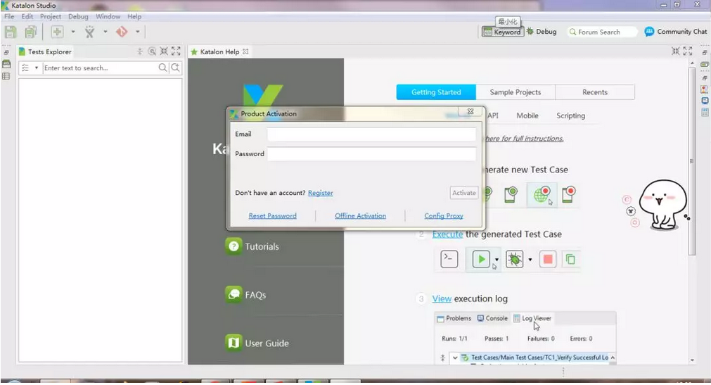 KatalonAutomation Studio 支持Windows,Mac和Linux,可直接从官网下载,下载完成以后需注册账号才可启用。