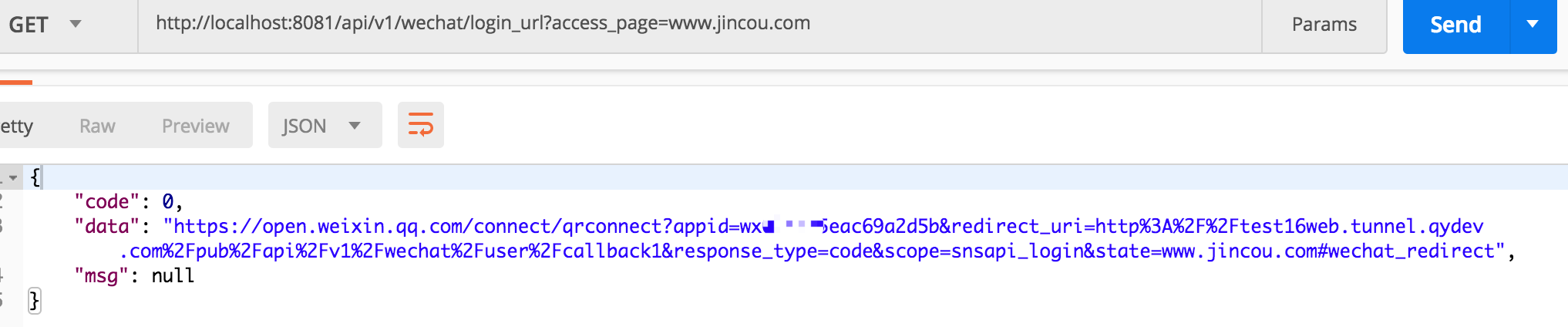 下一步需要做的是用户扫完登陆二维码后,进行回调:http://test16web.tunnel.qydev.com/pub/api/v1/wechat/user/callback1 接口