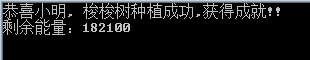 Console.WriteLine($"恭喜{name}, 梭梭树种植成功,获得成就!!");