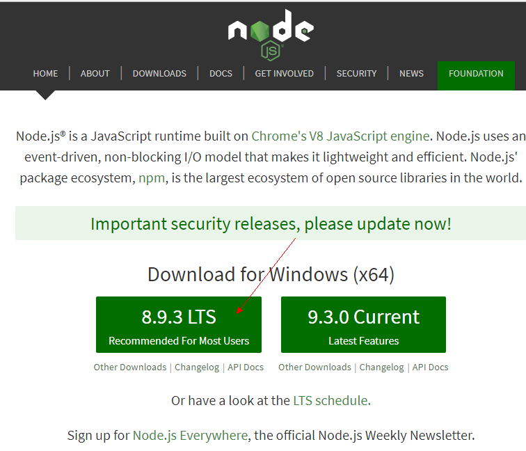 注意版本不能太低,如果您已经安装了低版本的node可以使用npm直接更新。