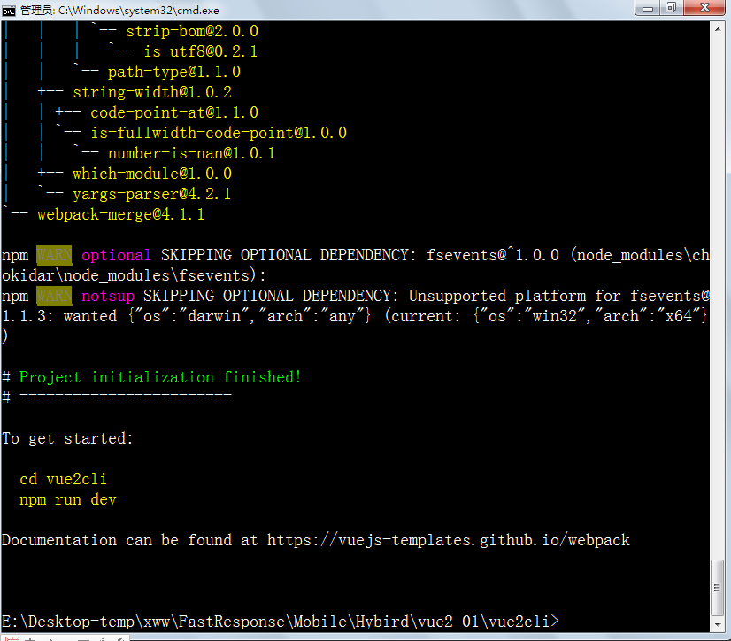 4)、安装项目依赖:npm install,因为自动构建过程中已存在package.json文件,所以这里直接安装依赖就行。不要从国内镜像cnpm安装(会导致后面缺了很多依赖库),但是但是如果真的安装“个把”小时也没成功那就用:cnpm install 吧