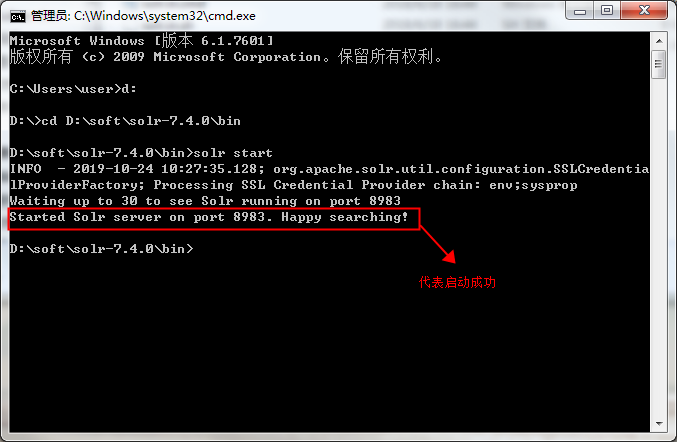 2. 在solr的bin目录下执行启动命令 solr start,solr应用服务器默认端口为8983,如果想指定端口号启动可以加参数–p例 如:solr start –p 8888