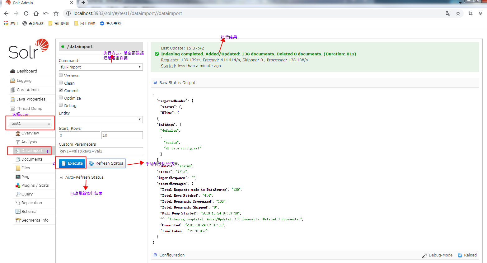 重启成功之后打开solr管理,选择创建的core并抽取数据,可以在D:\solr-7.4.0\server\logs下查询日志记录,如下图: