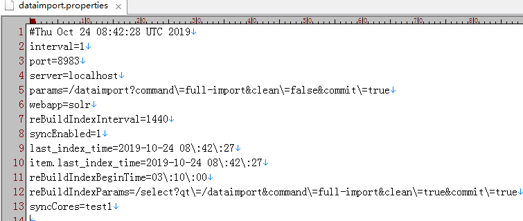 在重启之后dataimport.properties文件注释会都没有了,如下图: