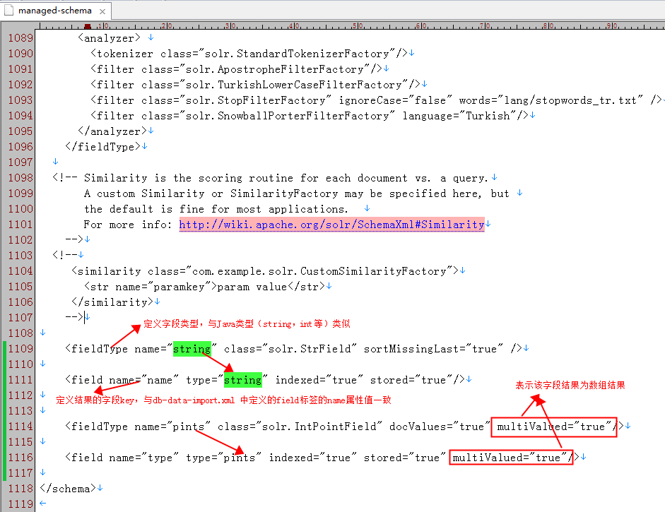 关于更多managed-schema的介绍请参考http://lucene.apache.org/solr/guide/7_4/documents-fields-and-schema-design.html