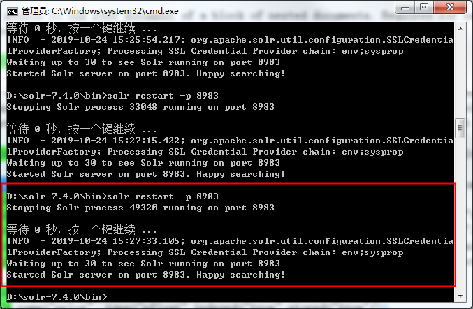 solr restart –p 端口号 重启solr服务 (注意:使用重启命令必须带有端口号)