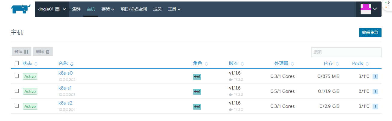 2, 支持3个节点的Rancher Server的管理端高可用;