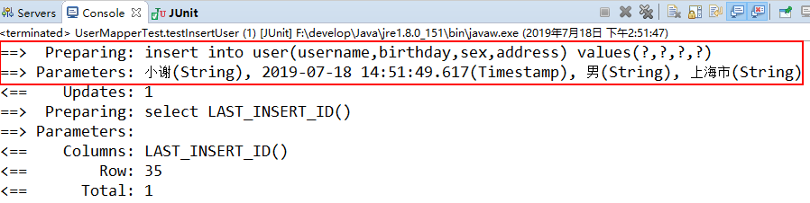 再执行sql时完整的sql语句和参数就会打印到控制台: