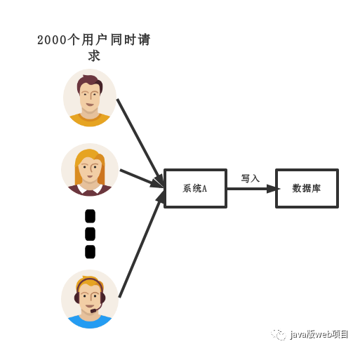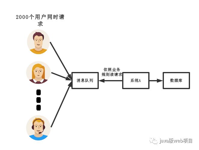 ● 系统A慢慢的按照数据库能处理的并发量,从消息队列中慢慢拉取消息。在生产中,这个短暂的高峰期积压是允许的。