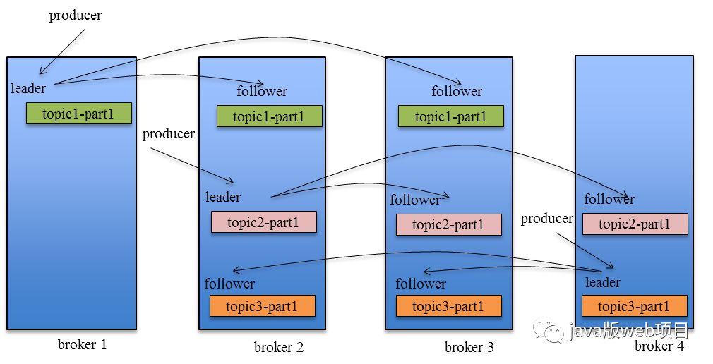 Producer在发布消息到某个Partition时,先通过ZooKeeper找到该Partition的Leader,然后无论该Topic的Replication Factor为多少(也即该Partition有多少个Replica),Producer只将该消息发送到该Partition的Leader。Leader会将该消息写入其本地Log。每个Follower都从Leader中pull数据。