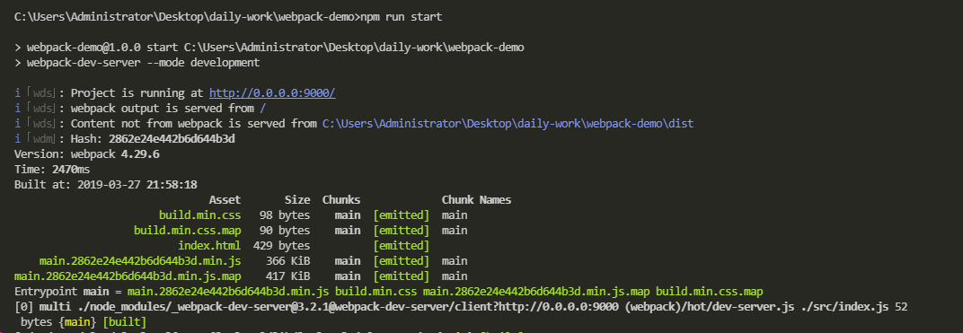 以上为打包的基础配置信息,在我们实际开发中,经常会用到前端开发服务,模块热更新以及前端的跨域请求代理,webpack中提供了webpack-dev-server来满足我们的需求,在使用之前先安装下webpack-dev-server的依赖: