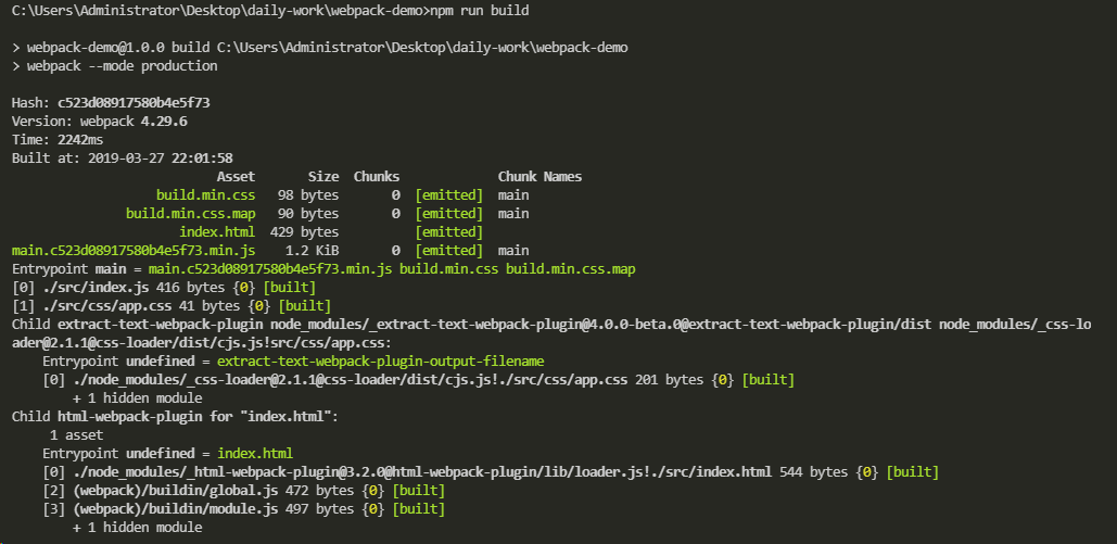 打包后的文件路径和配置信息,path为打包文件路径,filename为输出文件名称,name为原始文件名称,hash为打包后的hash地址: