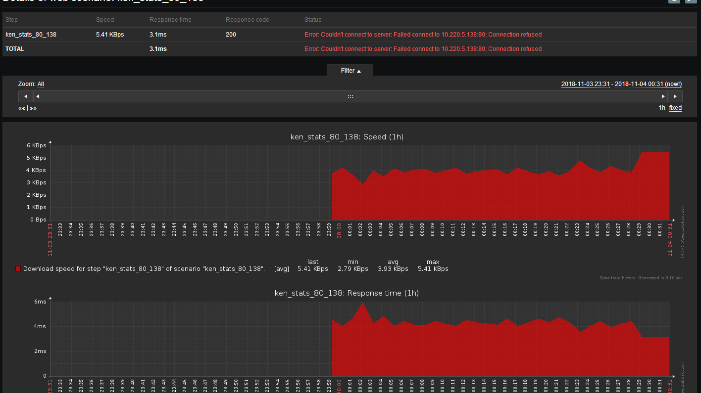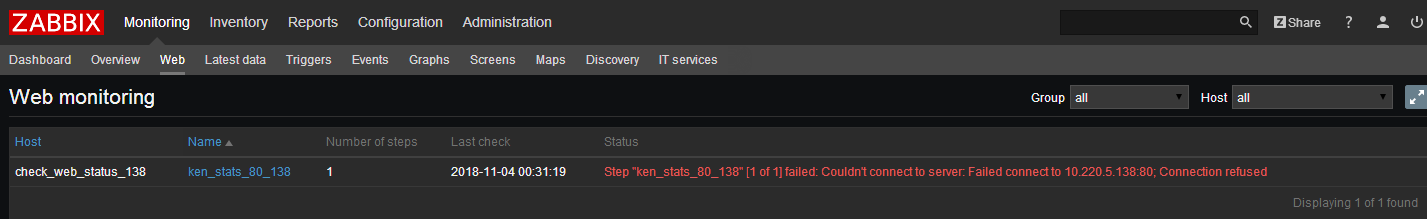 要查看定义的 Web 场景的详细数据,请转到 监控中 (Monitoring)→Web 或 最新数据 (Latest data)。 单击方案名称以查看更详细的统计信息。
