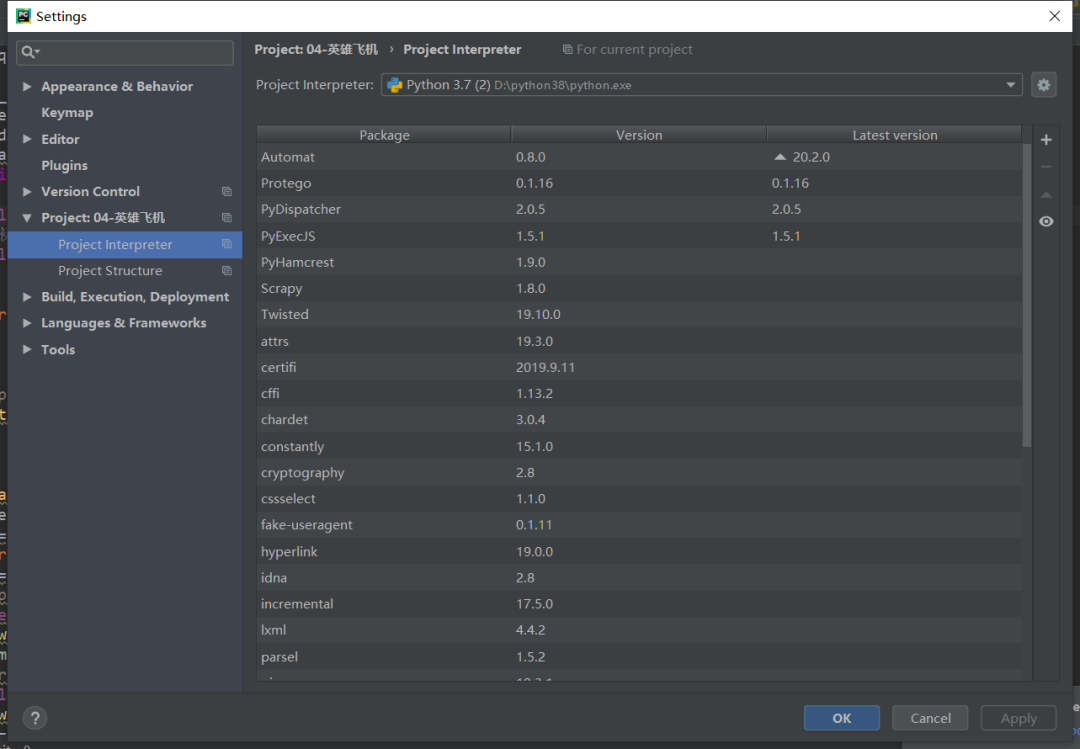 打开后会出现这个界面点击你的项目名字(project:(你的项目名字))project interpreter点击加号下载我们需要的库本项目需要(requests,requests,time,re模块),如下图所示。
