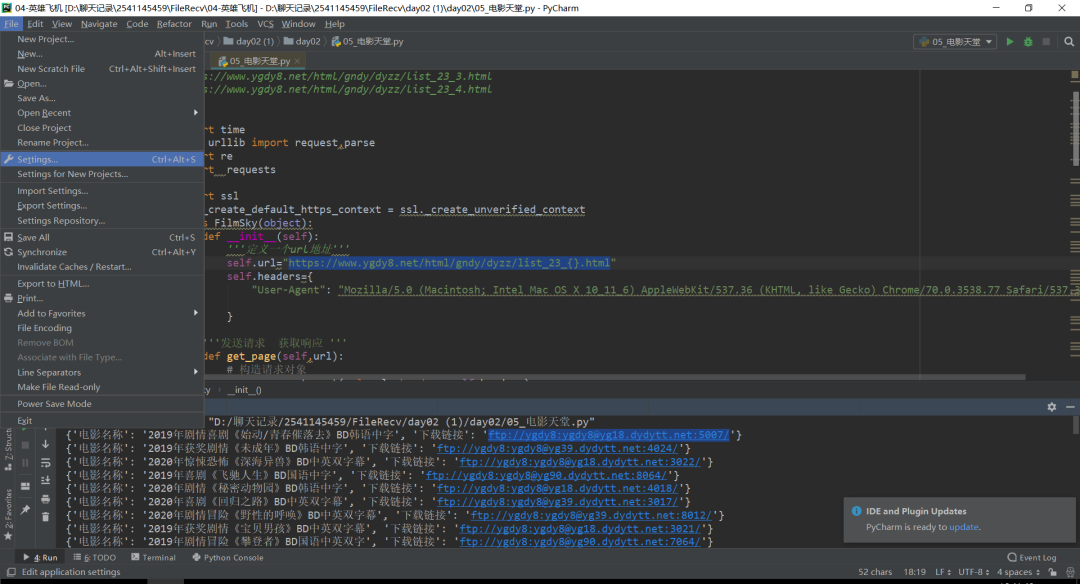 3. 需要本文代码的话,后台回复“电影天堂”四个字即可获取。