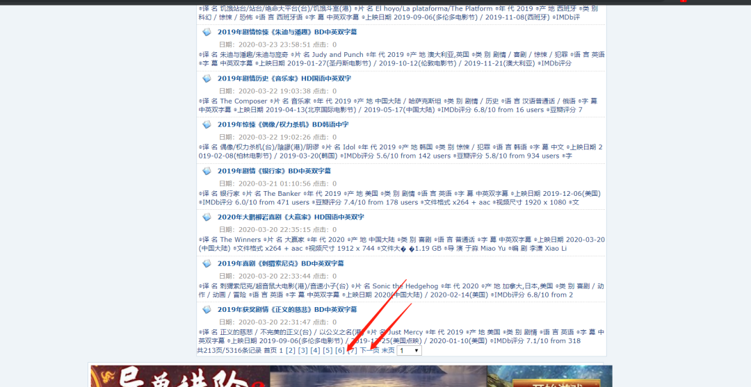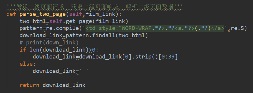 因为在网页网址上的链接有一些是空的 ,所有这样会导致电影下载的链接不匹配。所以我们要加个判断,如果下载链接的长度大于0那么就照常显示,否则就给它一个空值,这样就不会不对应了。最后返回这个结果,如下图所示。