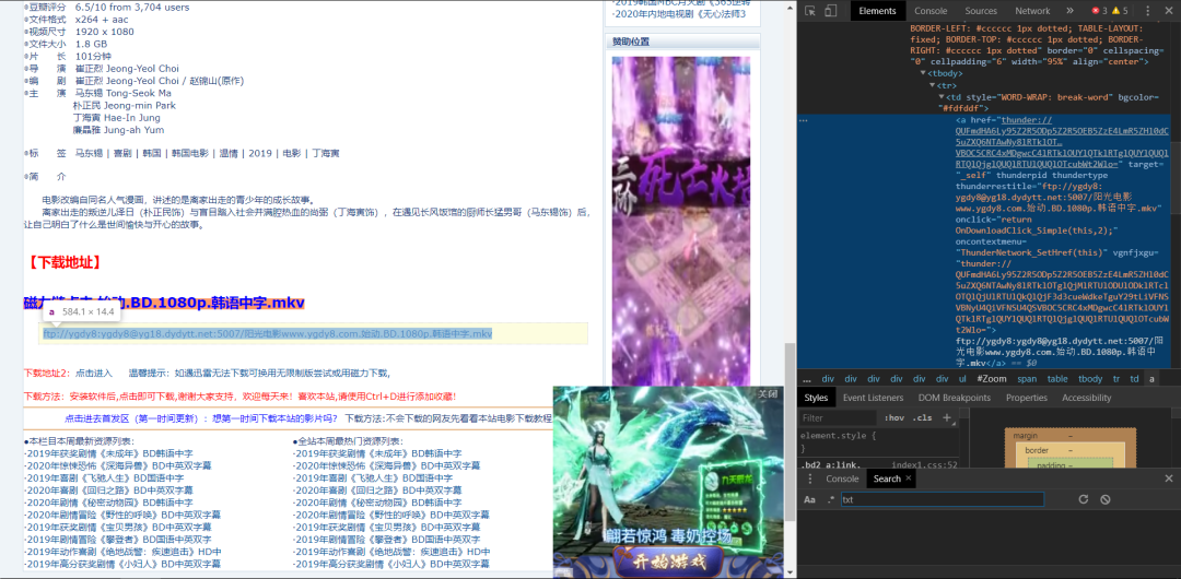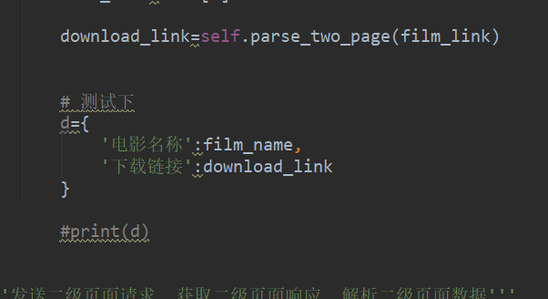 最后我们用把数据保存在一个字典加上下载链接和电影名字: