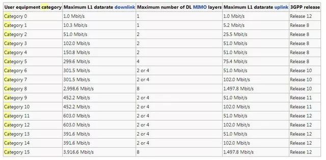 注意!这里的Cat并不是猫的意思,是Category的缩写,“种类,分类”的意思。Cat.X说的就是UE-Category,UE是用户设备(User Equipment )。Cat.X这个值就是用来衡量用户终端设备无线性能的,说白了就是用来划分终端速率(等级)的。