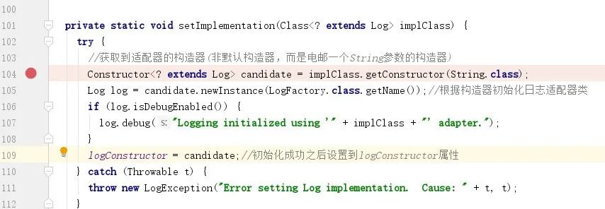 接下来我们看看读取到日志类之后调用了setLogImpl做了什么事情: