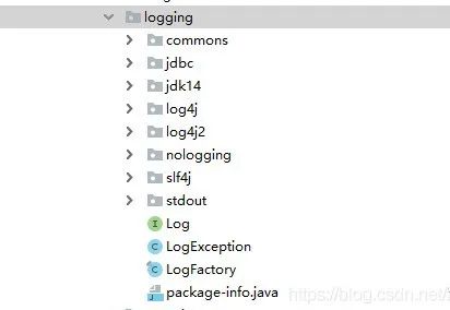 这就说明MyBatis支持六种日志类型(NO_LOGGING是不打印日志)。我们看一下MyBatis的日志模块也可以很明显的看出六种日志类型: