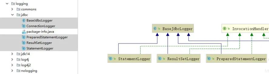 很明显,MyBatis将日志拆分成了ConnectionLogger,PreparedStatementLogger,ResultSetLogger,StatementLogger四种类型分开处理,它们都继承了BaseJdbcLogger类,而且实现了InvocationHandler接口,也很明显,这里用到了JDK动态代理。