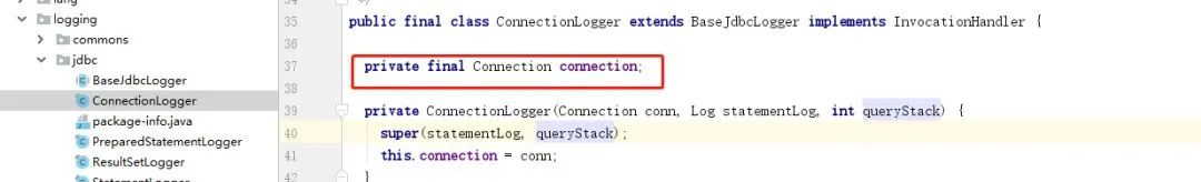 任意点开ConnectionLogger可以发现,它是用来代理Connection对象的: