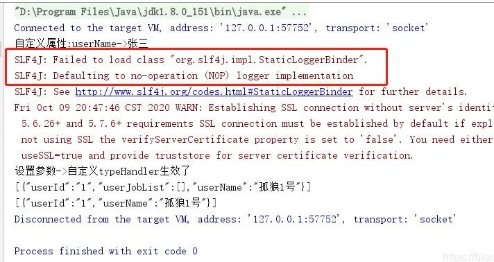 可以看到这里提示我们SLF4J没有任何实现,而后面的sql语句和参数这些信息也没有打印出来。