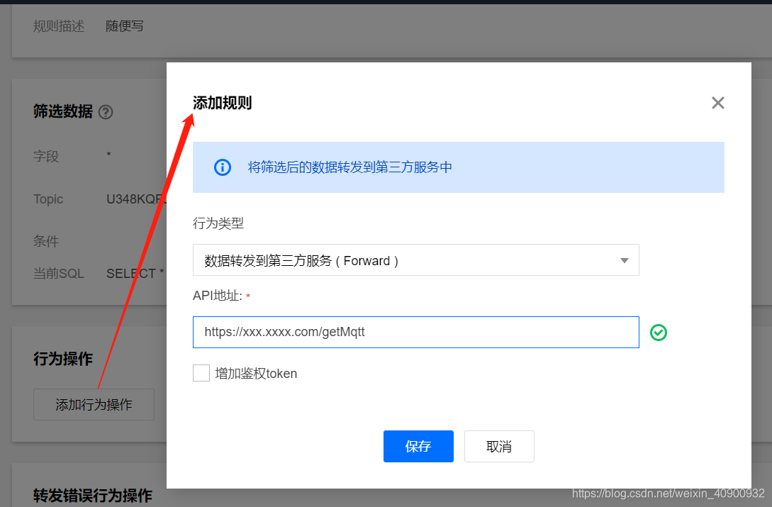 这里我们选择数据转发到第三方服务,第三方服务为java开发的一个后台测试程序,程序运行在阿里云ECS上