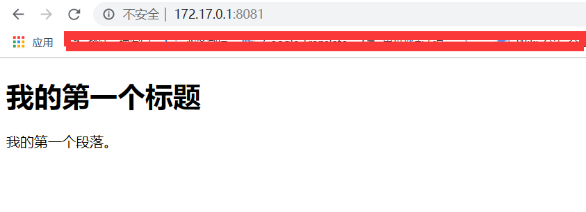 在浏览器里面输入http://172.17.0.1:8081/,输出结果如下,如果在访问时出现403错误,应该是index.html文件权限不足,给成644就行.