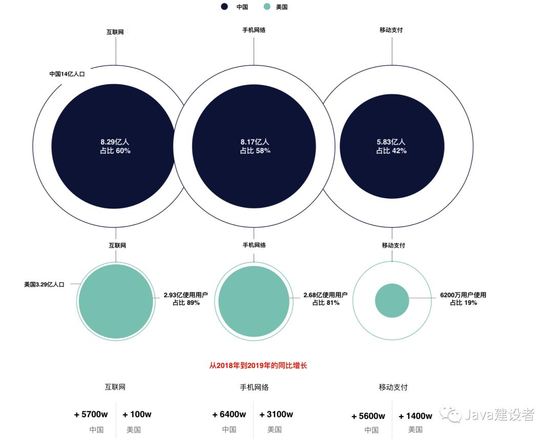 尽管中国互联网普及率为 60%,但是其庞大的规模意味着互联网用户数量几乎是美国的三倍。在移动支付中,差距更大:在中国,使用手机付款的人数超越了美国总人口。