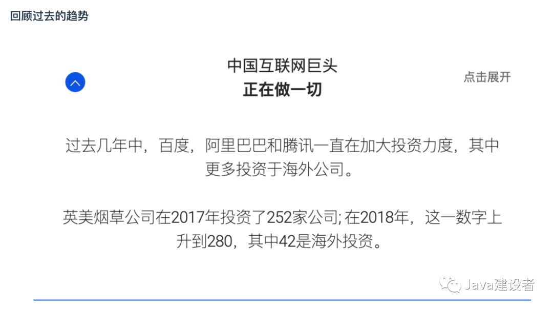 中国的科技巨头BAT(百度,阿里巴巴,腾讯)建立了生态系统,而挑战者TMD(头条,美团,大众点评,滴滴)则在加强其核心业务。