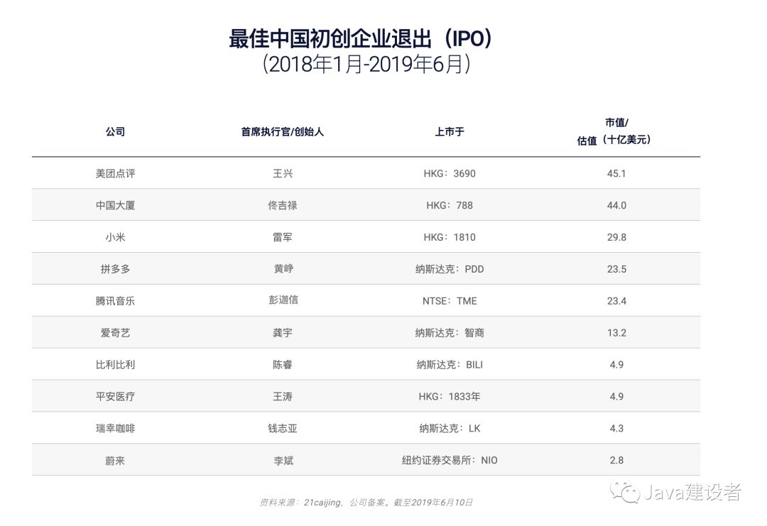 | 美团点评 | 王兴 | 阿里巴巴集团,通用大西洋,高house资本集团,北极光风险投资,红杉资本中国 | HKG:3690 | 45 |