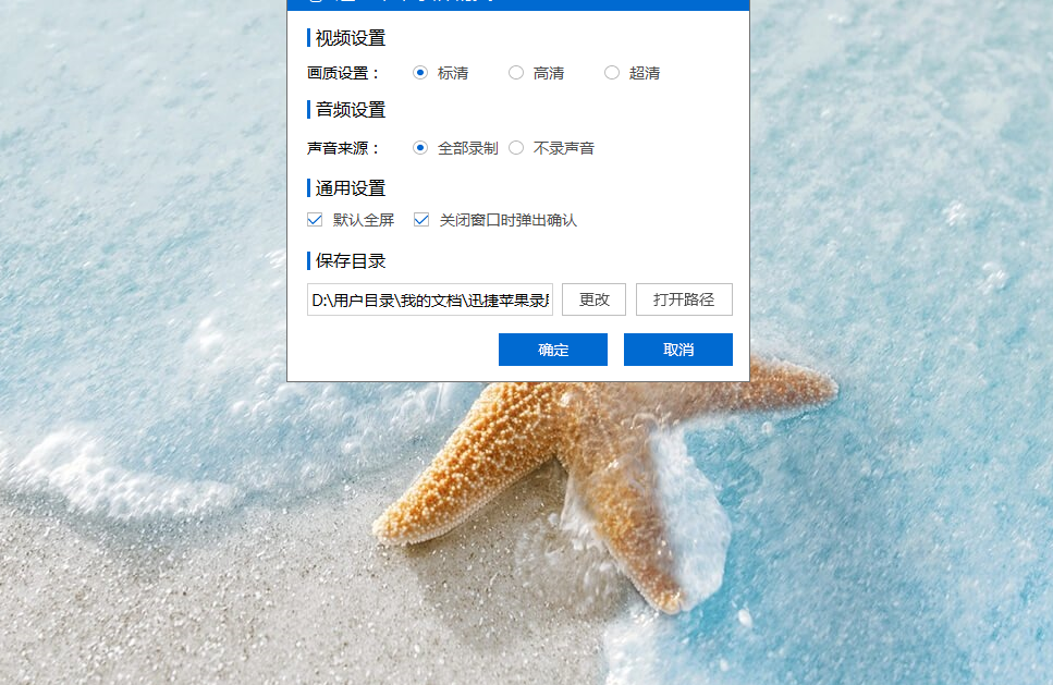 6、投屏的过程完毕,下面我们来讲讲手机录屏,录屏很简单,在手机投屏电脑之前,选择好相应的参数,更改保存目录即可。