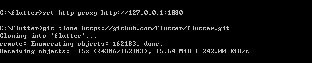 因为众所周知的原因,clone 下载 flutter 库很慢,所以安装了科学上网软件,临时设置 cmd 代理后下载速度会快一些。