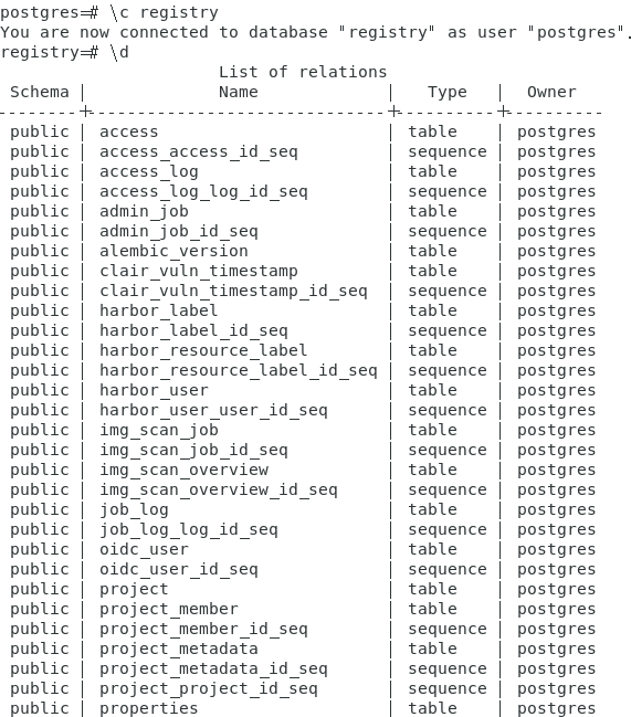 2.2 找到harbor的数据库,并进入容器