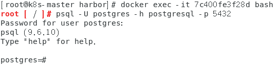 psql -U postgres -h postgresql -p 5432