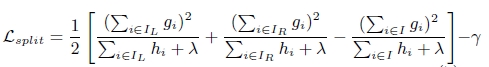 xgboost寻找分割点的标准是最大化,lamda,gama与正则化项相关