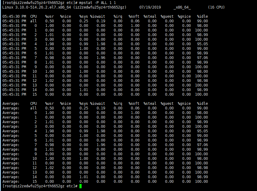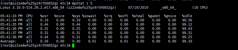 mpstat是Multiprocessor Statistics的缩写,是实时监控工具,报告cpu的一些统计信息,这些信息都存在/proc/stat文件中,在多CPU系统里,其不但能查看所有的CPU的平均状况的信息,而且能够有查看特定的cpu信息,mpstat最大的特点是:可以查看多核心的cpu中每个计算核心的统计数据