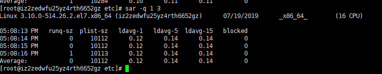 sar -q 查看队列的长度(等待运行的进程数)和负载的状态