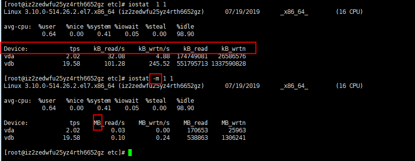 kB_wrtn:写入的总数量数据量;这些单位都为Kilobytes。