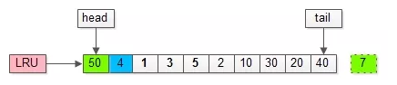 (2)把页号为50的页,放到LRU头部,同时淘汰尾部页号为7的页;