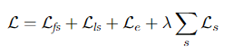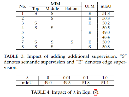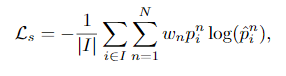 除了在网络的末端,还对顶部和中间路径使用加权交叉熵损失Ls,如图1中的虚线箭头所示。然而,由于下部路径的分辨率太低并且ground truth的下采样引入了太多的伪像,因此在底部路径上添加这种语义损失函数无济于事。