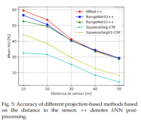实验结果表明,与基于投影的最新方法RangeNet++相比,本文的方法减少了约98%的参数数量,并且速度提高了约4倍,同时实现了更高的精度。同时,还在嵌入式平台上评估了我们的模型,并证明了本文的方法可用于自动驾驶。