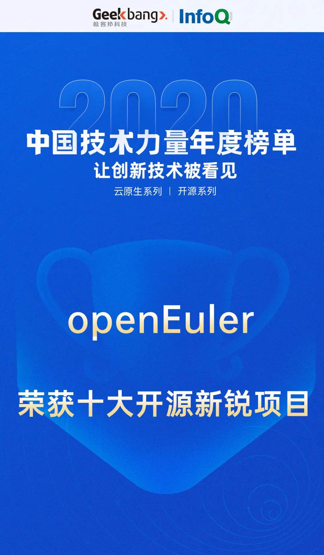 openEuler 荣获中国技术力量年度榜单十大开源新锐项目奖。